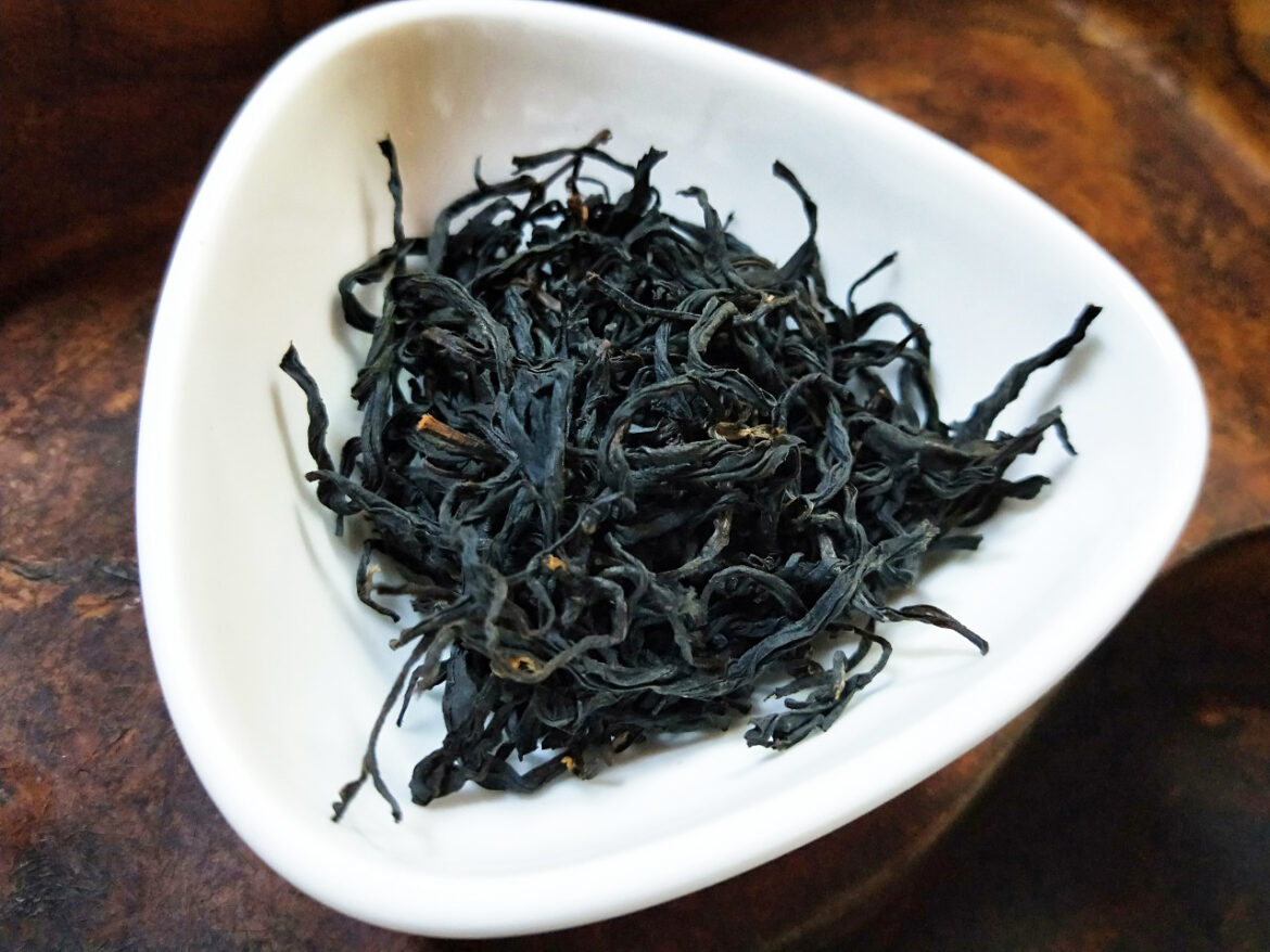 茶色是稍微深一點的褐紅色,從茶乾的型態就能聞的到淡淡的玫瑰香